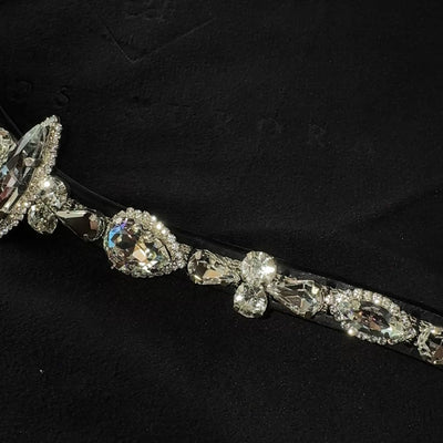 Euphoria Moonlight' – a limited edition that combines timeless elegance with exceptional brilliance. Crafted from premium English leather and finished with meticulous handwork, this browband features exclusive, even more radiant crystals that capture and reflect the light with striking intensity. As with all our designs, 'Euphoria Moonlight' was created by us with great attention to detail to achieve a truly unique and refined look. The practical quick-release system ensures effortless handling, while the superior craftsmanship guarantees maximum comfort for your horse. With 'Euphoria Moonlight' every ride becomes a special moment.