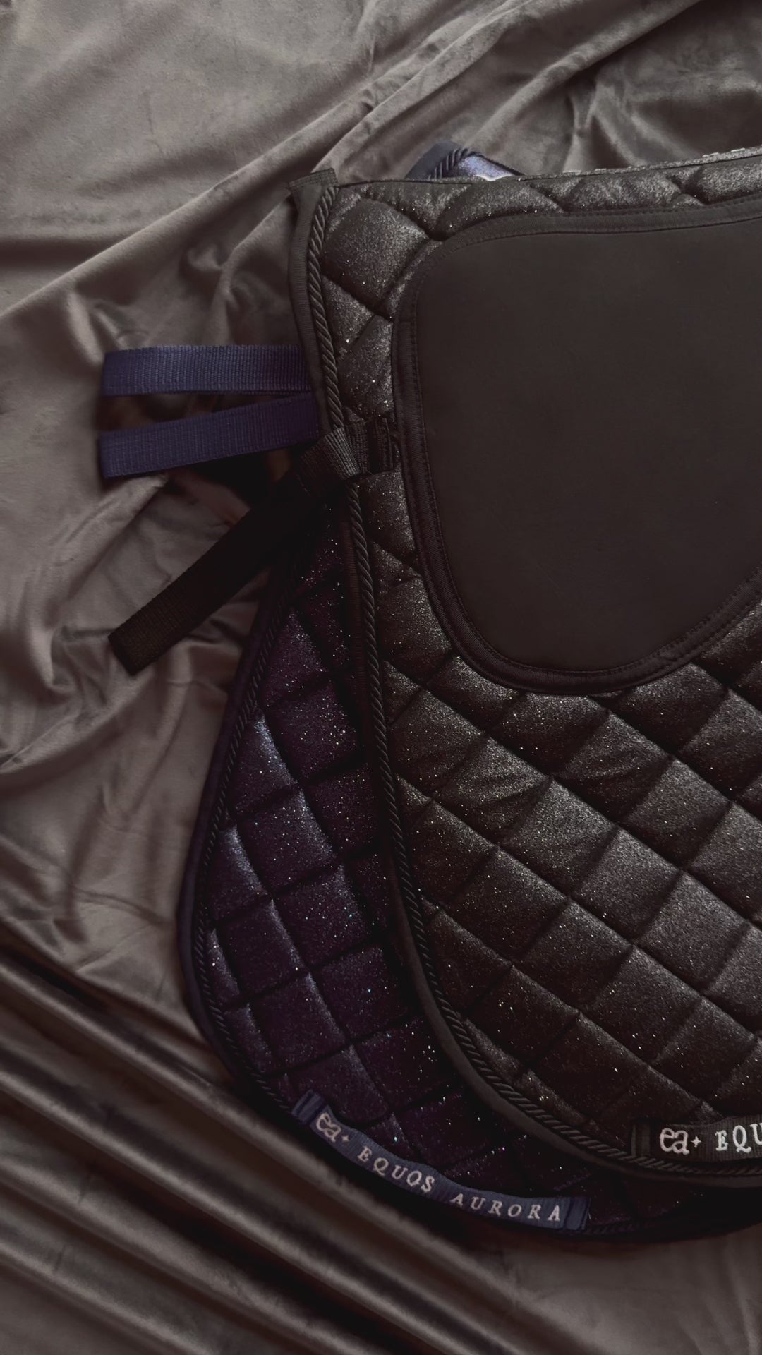 Unsere edle Satteldecke 'Believe in Yourself' ist ein echter Hingucker. Der auffallende Glitzerstoff verleiht der Satteldecke einen glamourösen Look und sorgt für einen funkelnden Auftritt. Die Gurt- und Sattelschlaufen und der zusätzliche Grip sorgen dafür, dass die Satteldecke unter deinem Sattel nicht verrutscht. Die Unterseite der Satteldecke besteht aus 100% Baumwolle im Waffeldesign, sie bietet eine gute Saugfähigkeit und atmungsaktiven Komfort für dein Pferd. Die feine Zierkordel sowie der Equos Aurora Stick runden das Design von der Satteldecke ab.Sie ist leicht zu reinigen und zu pflegen, so dass sie auch noch nach vielen Ritten wie neu aussieht.